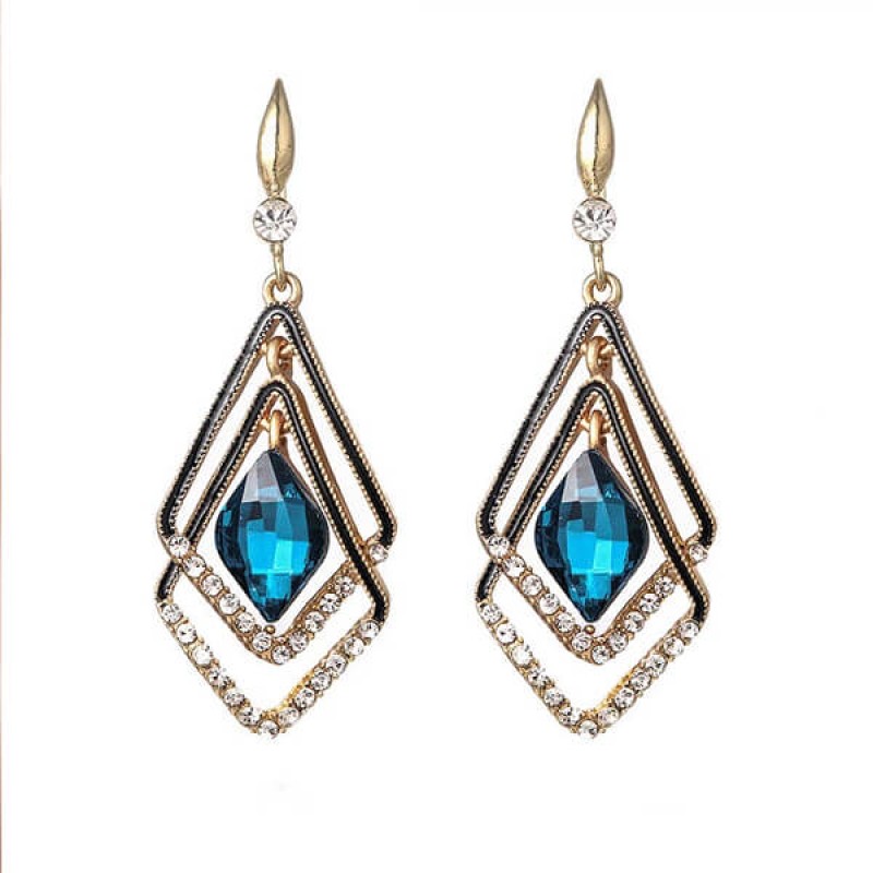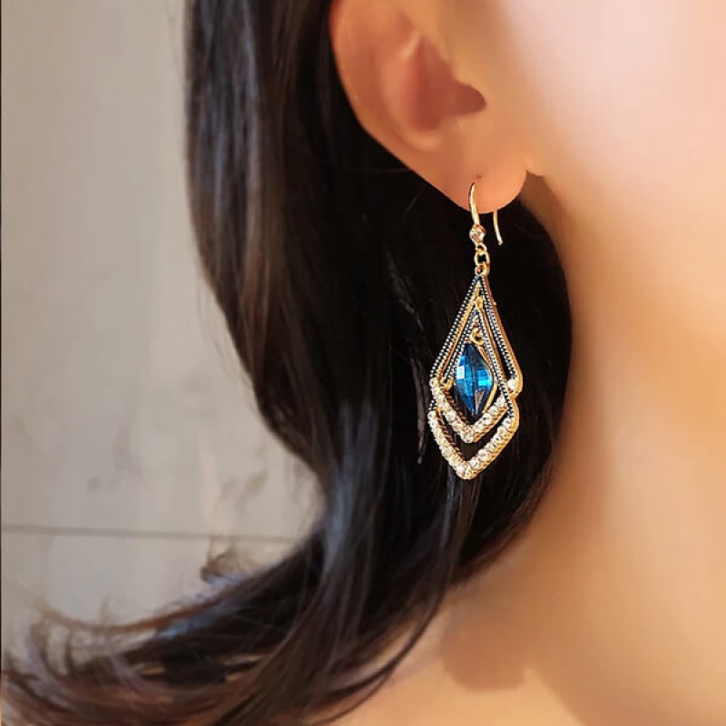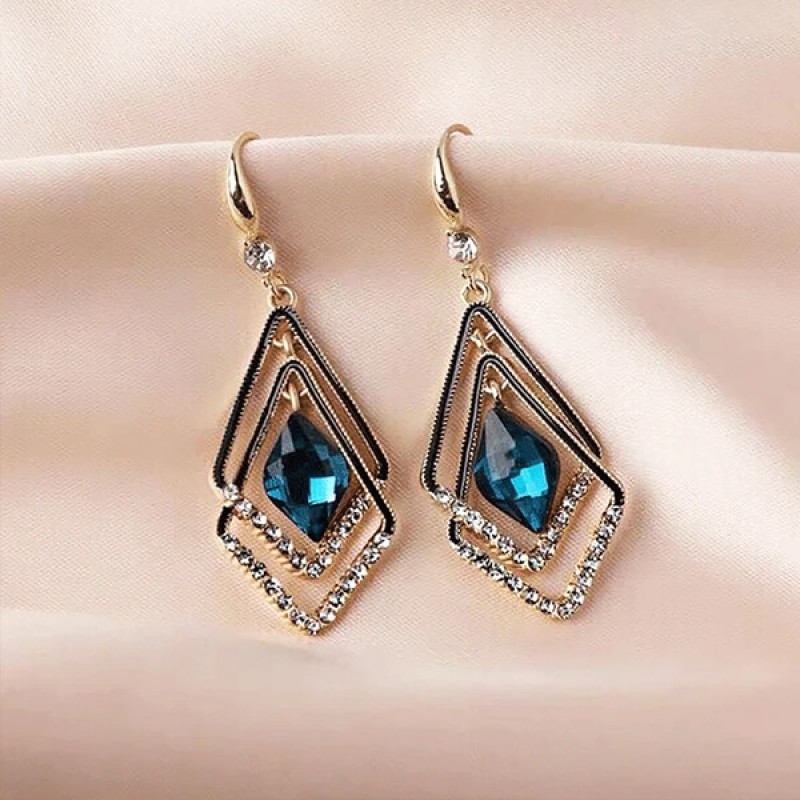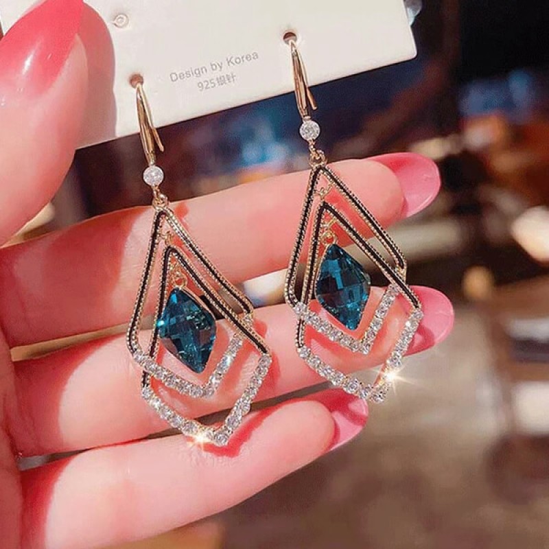- Korean Blue Geometric Double Earrings